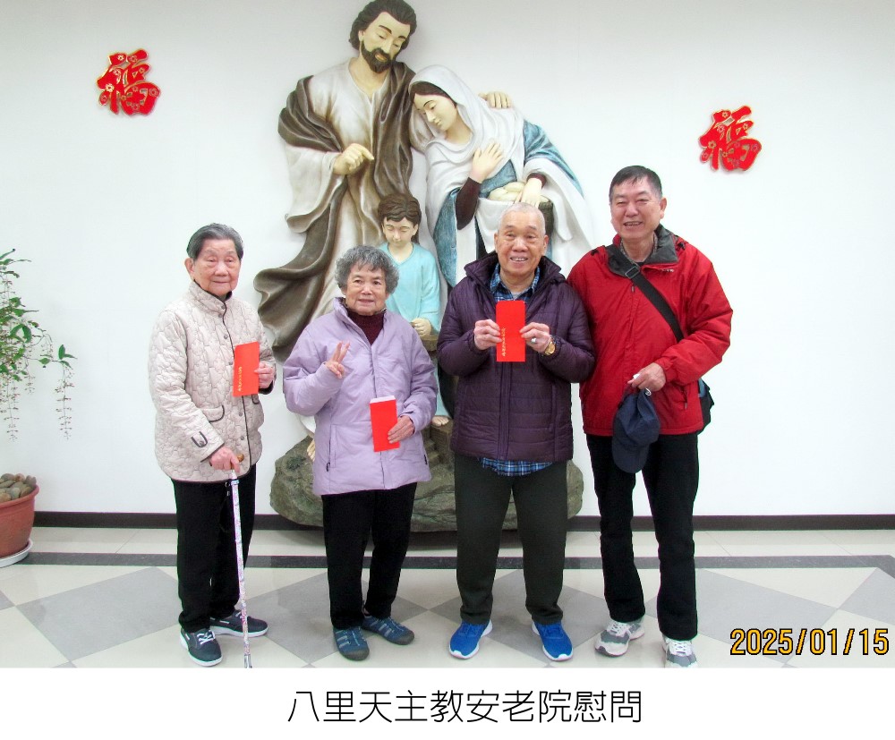 元月十五日(星期三)上午,黃治雄常務理事、何凱文組長代表本會前往八里天主教安老院,慰問無依老弱鄉長並致贈慰問金壹仟元。院方對本會之愛心善舉表達衷心感謝之意,圓滿完成慰問之行。