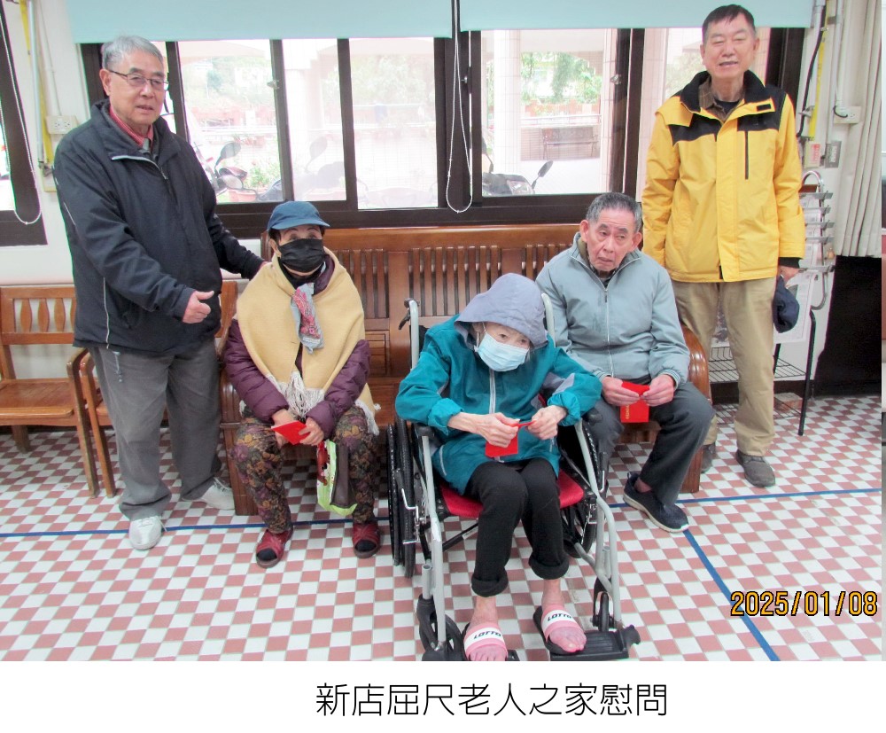 元月八日(星期三)上午,韓介光理事長、黃治雄常務理事、何凱文組長,前往新店屈尺老人之家探訪鄉長鄉親並致贈慰問金。本會同時也向照顧長者的院方幹部們表示謝意。