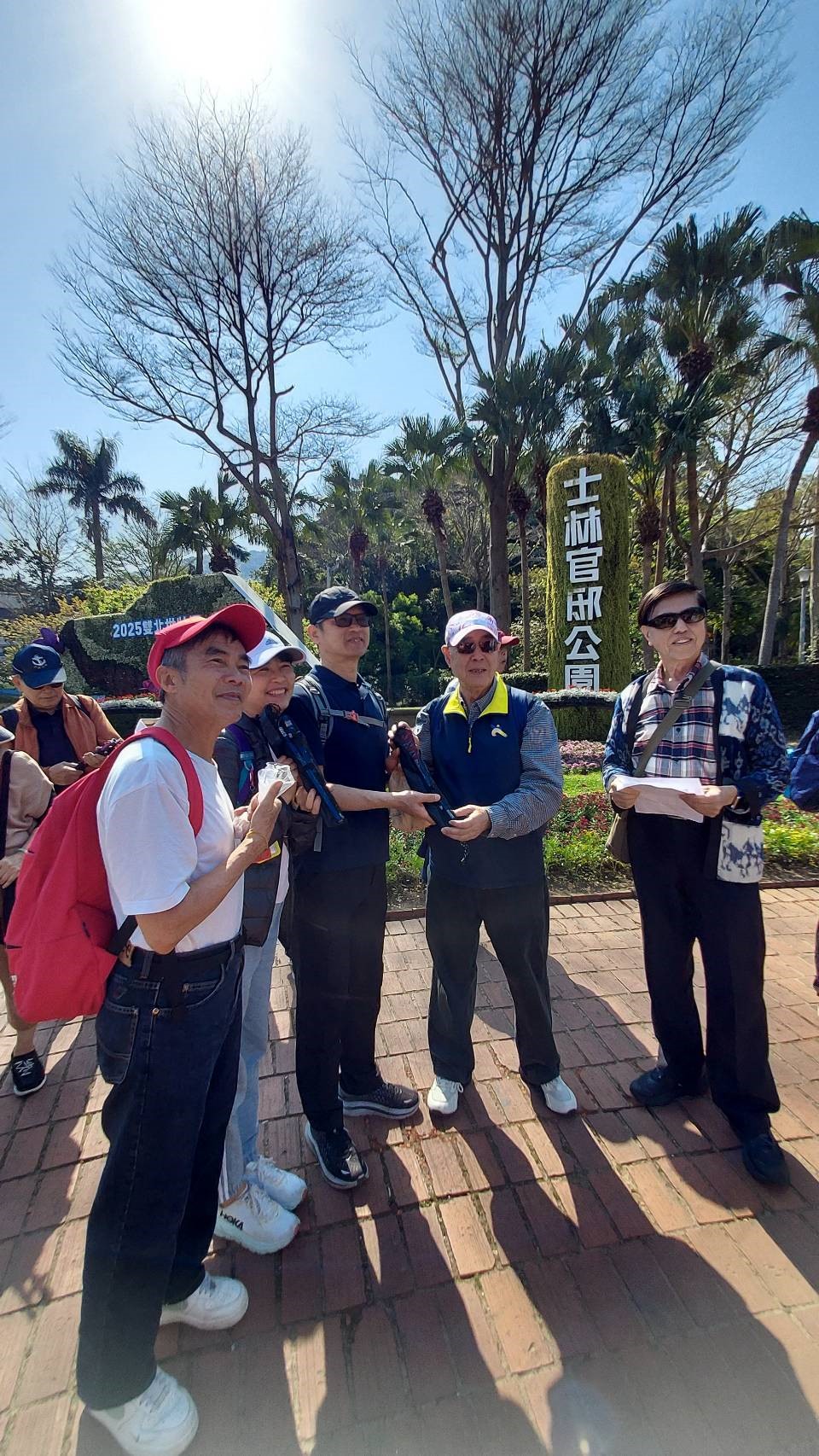 台北市廣東同鄉會於114年3月23日舉辦快樂健走活動,本次為前往士林官邸公園,當天氣候宜人,陽光溫暖,最適合出遊的好天氣,參與活動的鄉親朋友非常踴躍,早上9:00在士林捷運站2號出口報到集合,在韓介光理事長帶領下,由領隊李生元理事引領到達士林官邸公園大門,大家精神飽滿、和樂融融,拍了幾張大合照,並請韓理事長頒發健行滿五次之三位會員紀念品登山杖各乙支及合照留念。