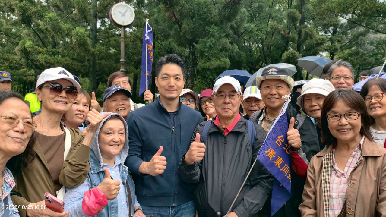 接著步行到露天音樂台,正好在舉辦「2025大安森林公園生態博覽會」開幕儀式,臺北市的大家長蔣萬安市長正好出席致辭,這是當天公園裡最主要得活動,我們也順勢坐到觀眾席參與開幕活動,這次博覽會的主題是「探見大安微森秘境」,邀請市民走進公園、貼近自然,重新發現城市中那些看似平凡卻蘊藏豐富生命力的角落,經由人與自然的連結,喚起民眾對生態平衡與環境共生的關注,同時聚焦「微棲地」的重要價值,從菌絲、蚯蚓、根系與微生物等微小生命出發,象徵支撐城市綠地的無形力量。藉此機會,身兼臺北市政府市政顧問的葉傑生常務理事邀請蔣萬安市長與韓理事長暨參加本次健走活動的鄉親們合影留念,大家都很開心能在這樣的場合與蔣市長巧遇。